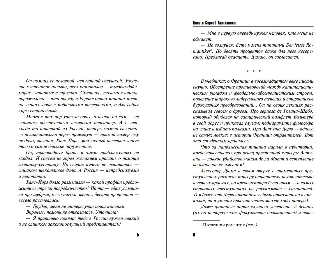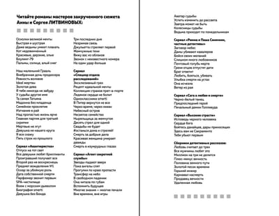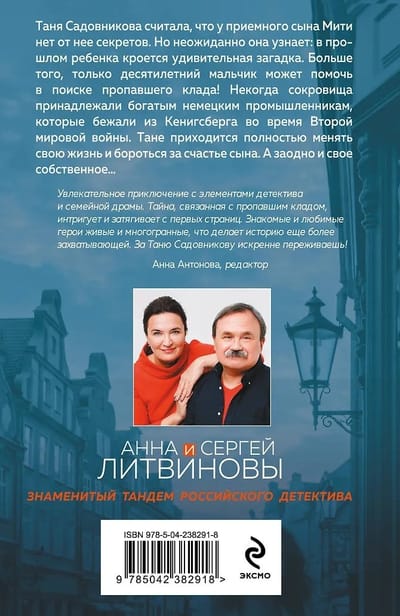 A twisting plot, relatable characters, and contemporary issues—these are the secrets to the success of a good detective story by the Litvinovs. The investigation is once again led by characters well known to readers from novels and television series: adventurer Tatyana Sadovnikova and her stepfather, retired foreign intelligence colonel Valery Khodasevich.