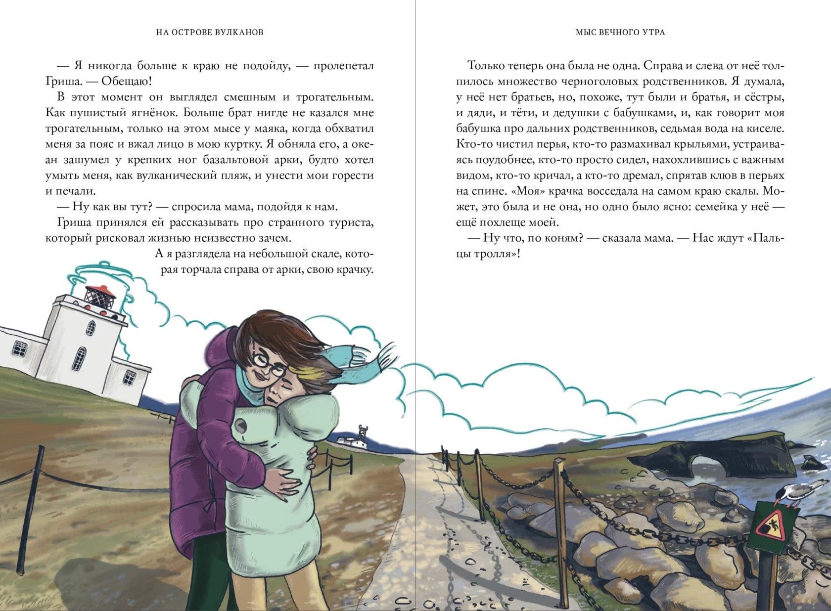 What is a family trip like? Noisy, upbeat, energetic, fun! And if it is a family trip to an island where you can find more than a hundred volcanoes? And if the road goes Masha, who loves order and goats, joker Grisha, who always gets into trouble, strict dad and mom-writer? What will this journey be like? One thing is clear: it will definitely not be boring. The family will plunge into the world of Vikings, taste volcanic bread, admire whales in the museum and dead ends in the open sea, meet waterfalls and geysers, bathe in hot springs, learn the name of some runes, buy Thor's hammer and even make a pact with the elves! Not everything goes perfectly: children and adults quarrel and reconcile, take offense and rejoice. The main discovery that awaits Masha, Grisha and their parents on the volcano island is the feeling of family support and love.
