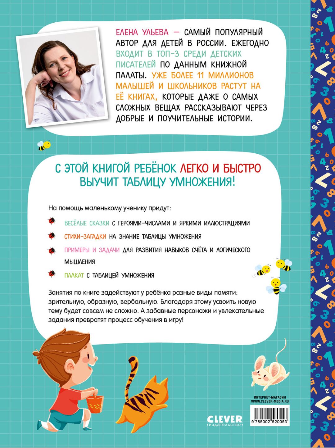 The book "The Multiplication Table in Fairy Tales" is based on a comprehensive approach to learning multiplication and developing counting skills and mathematical thinking. Reading fairy tales, looking at pictures and solving riddles, the child uses different types of memory to memorize information. And fascinating tasks will help to consolidate new knowledge and practice it in practice.