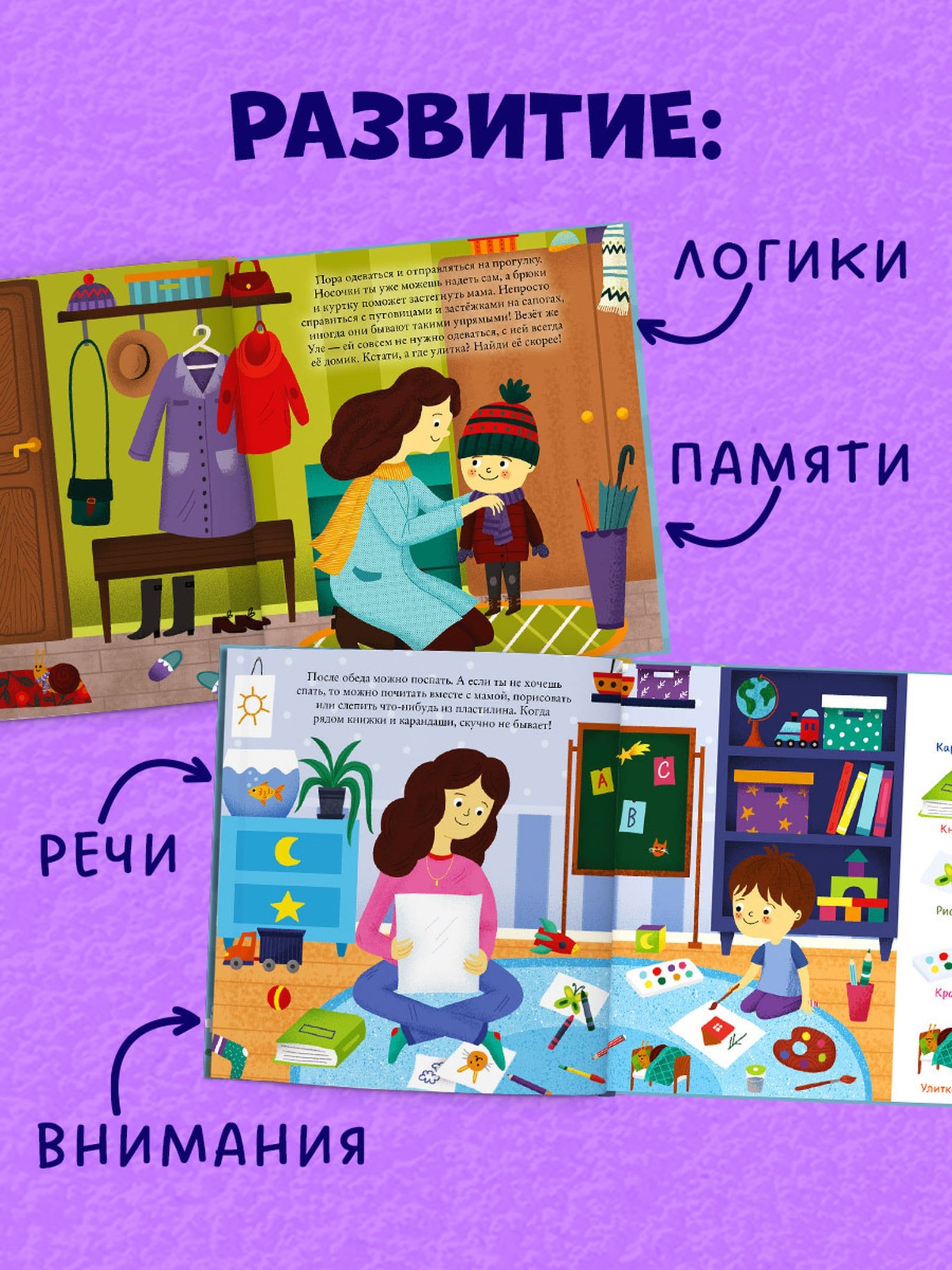 Learning, development and, of course, fun play — all this in the book “Find and Show, Baby. Daily Routine”!