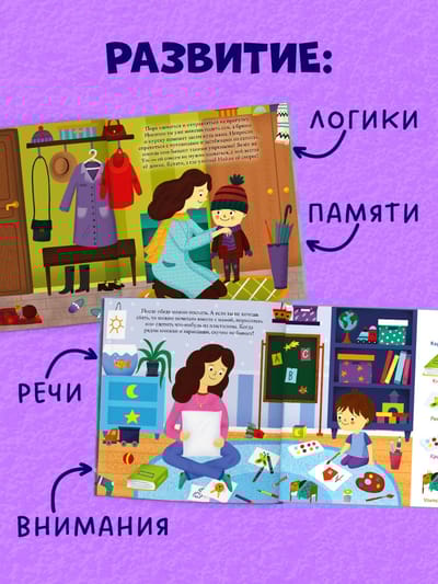 A game book with bright illustrations and tasks for developing attention, logic, memory, and speech will help turn the daily routine (at home or in kindergarten) into a pleasant ritual and better education!