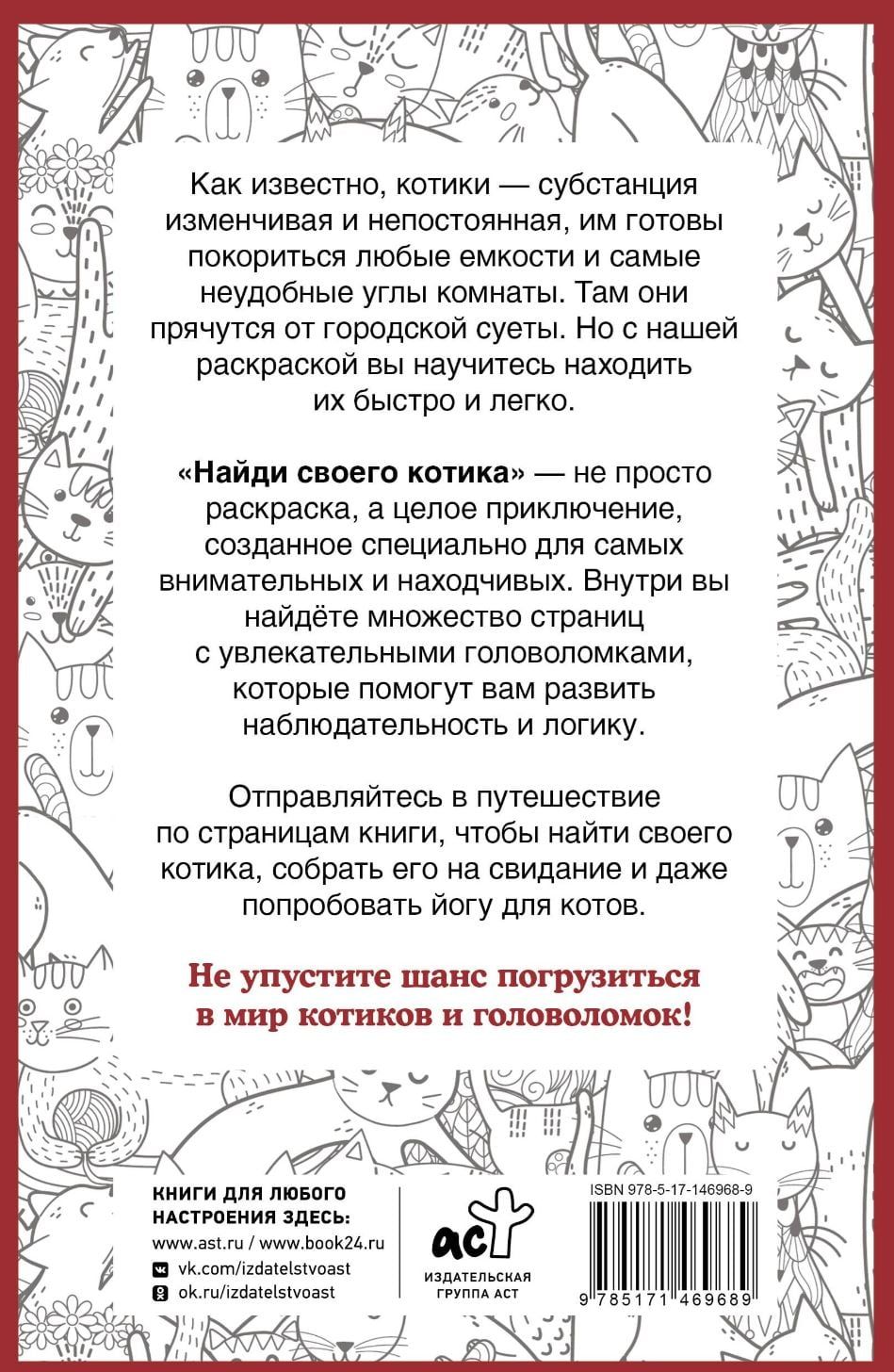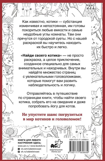 "Find your kitty" - not just a coloring book, but a whole adventure, created especially for the most attentive and resourceful. Inside you will find many pages with fascinating puzzles that will help you develop observation and logic.