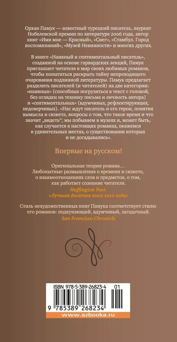 In The Naive and Sentimental Writer, based on Harvard lectures, Pamuk invites the reader into the world of his favorite novels to try to unravel the mystery of the enduring charm of authentic literature. Pamuk proposes to divide writers (and readers) into two categories: “naive” (able to immerse themselves in the text with their heads, without regard to the technique of writing and the personality of the author) and “sentimental” (thoughtful, reflective, incredulous). We are waiting for the writer and his characters, the concepts of fiction and plot, questions about what time is and what it means to “see”; we will visit museums and, perhaps, as happens in real novels, we will find ourselves in amazing places, the existence of which we did not know.