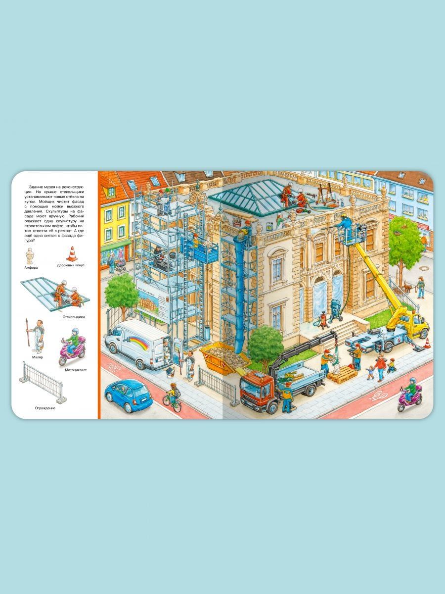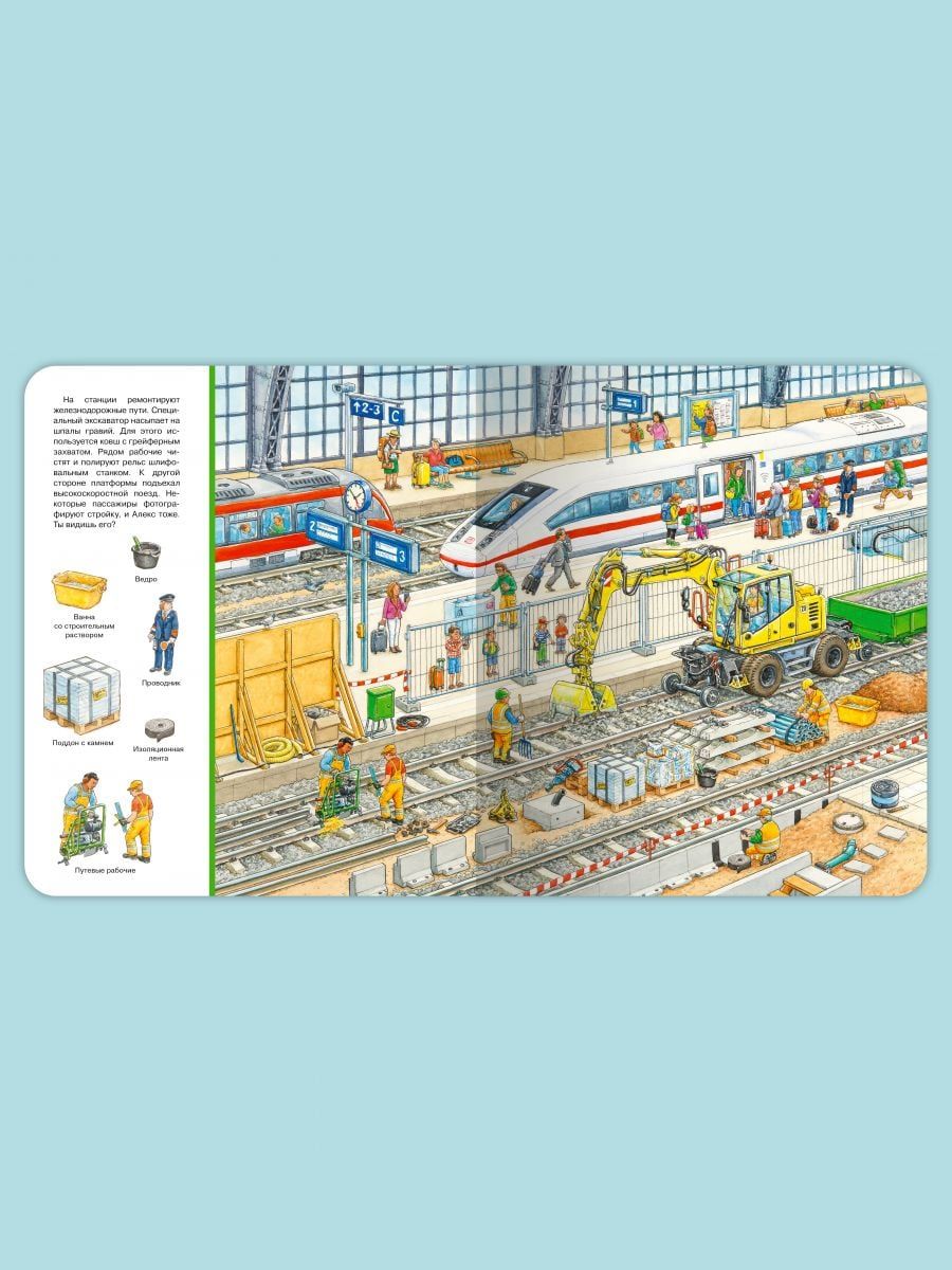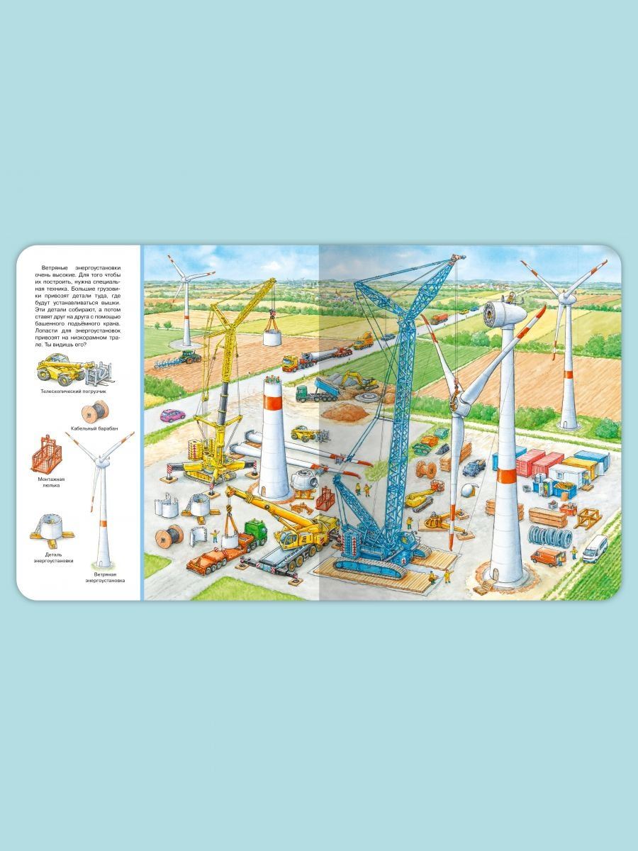Cognitive wimmelbook "Find and Show. Big Book. At the construction site" will help kids in a playful way to expand their vocabulary. The book will fascinatingly tell and show the baby all the most interesting things about how the construction of various buildings, what transport and what equipment is involved. Favorite "Find and show" on each page will focus and develop the attention of even the most restless kid. The bright, oversized book is printed on high-quality, heavy-duty cardboard with safe, rounded edges. Thanks to the colorful panoramic illustrations children will easily remember the material, and the task "Find and Show" will turn the lesson with your child into an educational game. This gift is sure to please!