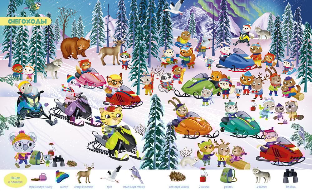 You will go high into the sky, dive into the depths of the sea, visit the hot desert and snowy expanses. And on the way play "Find and Show", look at and color pictures, have fun with stickers.