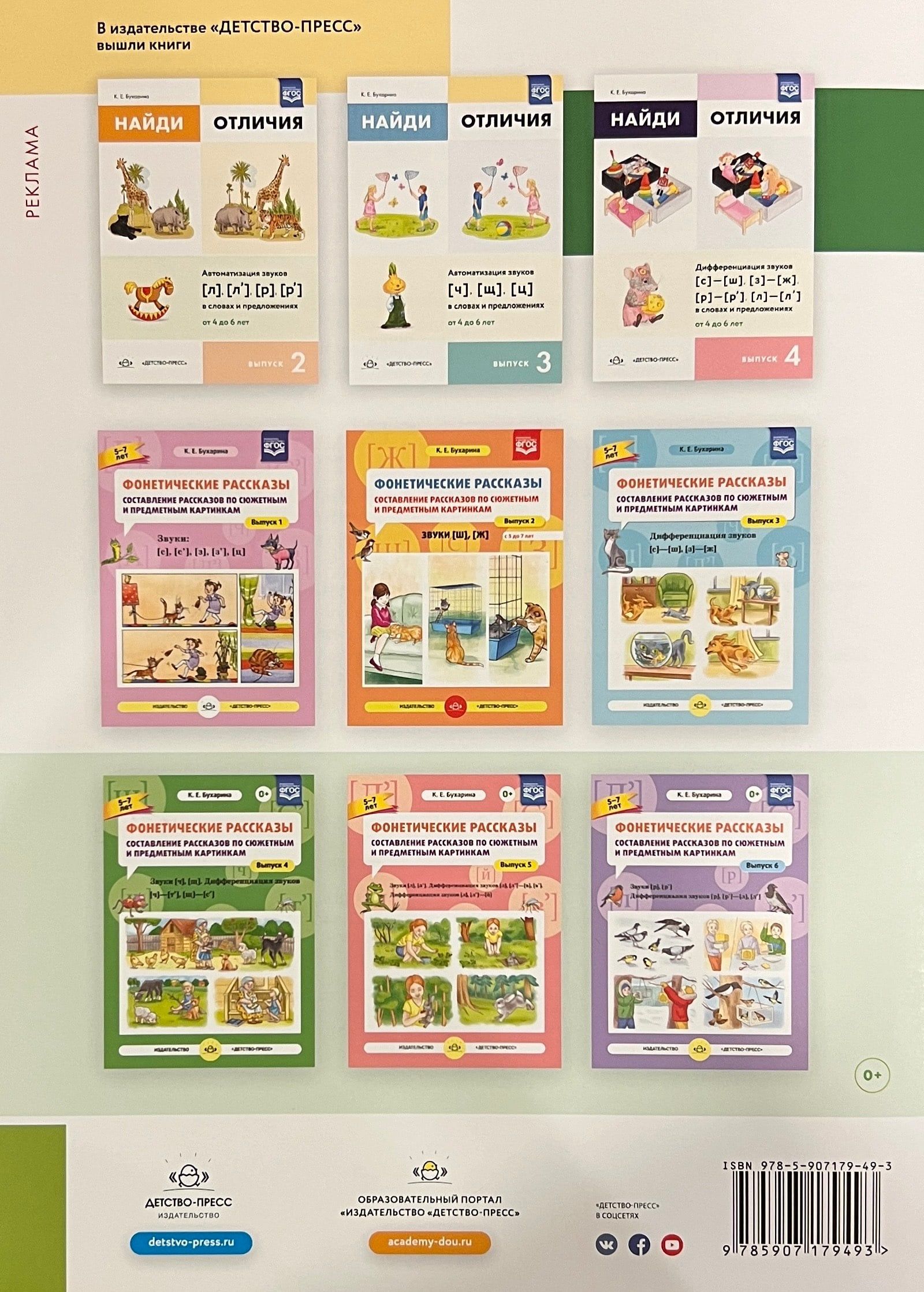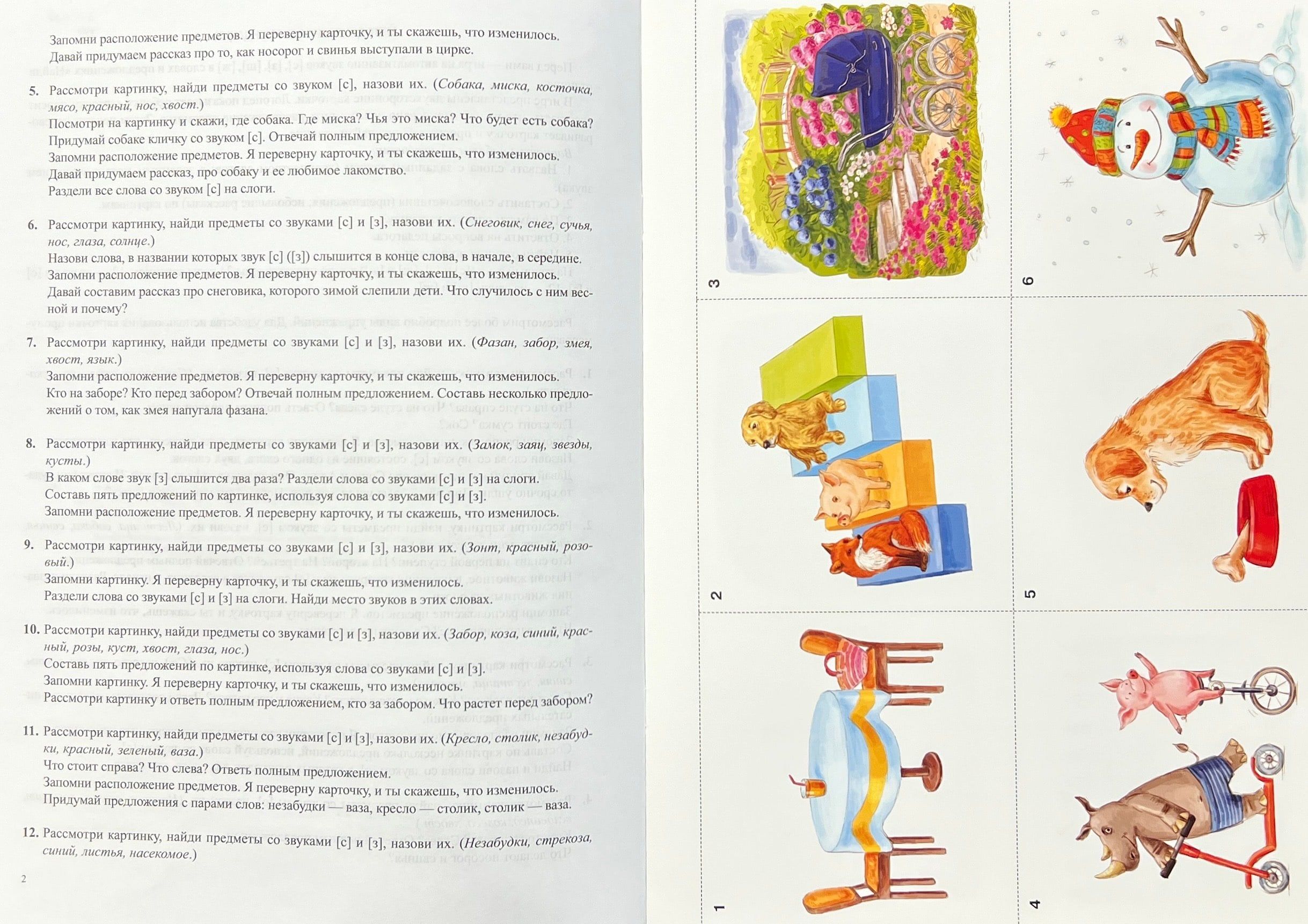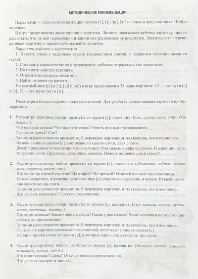 The manual is aimed at consolidating whistling and hissing sounds in words and sentences. The author gives methodological recommendations for working with the cards, which are presented on a colored tab. The publication is intended for speech therapists, educators, and parents of children who have problems with pronunciation.