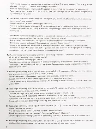 The manual is aimed at consolidating sonorant sounds in words and sentences. The author gives methodological recommendations for working with the cards, which are presented on a colored tab.