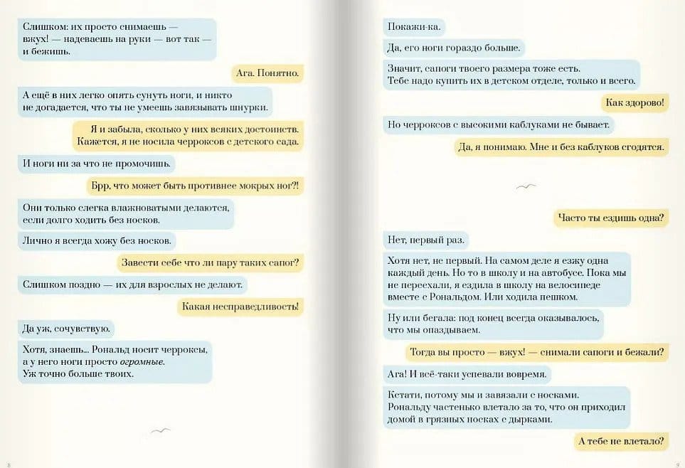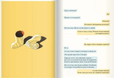 - How far are you going? - To Lillehammer. - Why do you want to go there? - I'm going to move there. - Some people are lucky! By the way, Lillehammer is easy to get to, it's the terminus. There's no confusion, so no one will get scared or angry. I'm going there too. I used to live there. And that's where Ronald lives. - Well, in that case, we're on our way! I think we'll have a good time. - We'll see. Erke meets Britta on the train to Lillehammer. It is the girl's first time traveling alone, and she has a lot to tell: about running fast in her Cherrocks boots, about the huge bay window after which she is named, about Ronald in his Superman costume, about her mother who went to New York to "keep a cool head." The only dialog in the book is between a child and an adult. Erke and Britta talk about first crushes, friends, parents. Gradually the main storyline emerges - we begin to understand what happened in the girl's family, why she is traveling alone and where. A casual conversation between two strangers turns into a grand story about hope.