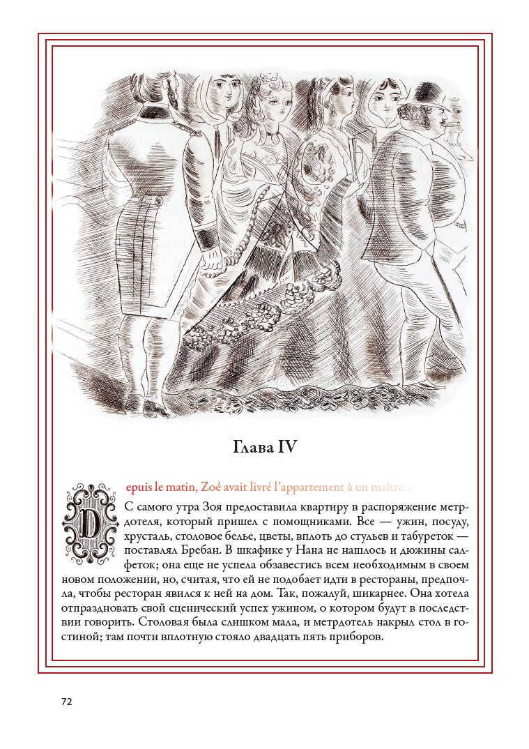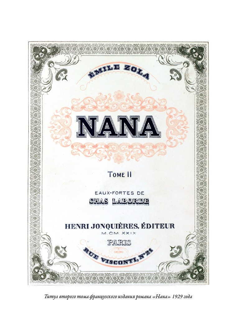 The novel "Nana" was first published in 1880. It was the ninth work of the large-scale literary cycle "Rugon-Macquaries", created by one of the most famous representatives of French naturalism - Emile Zola. The fate of the novel's protagonist, a Parisian cocotte, vividly demonstrates the underside of French life during the Second Empire. The text is translated by T. Irinova. The book concludes with an essay on the work of Zola and the cycle of his novels "Rugon-Macquarie. The edition is decorated with color illustrations by French engraver and painter Charles Laborde.