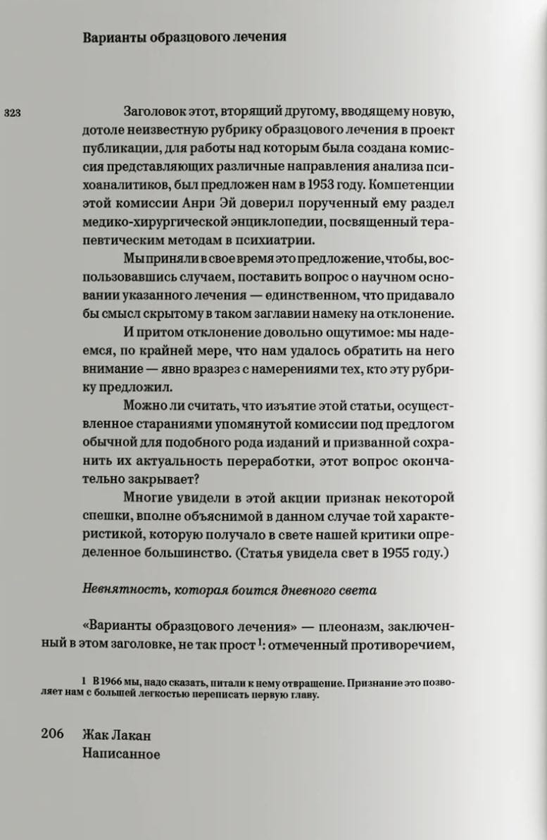 Written is published in Russian for the first time in two volumes, the first of which includes, among others, the famous "Roman Speech" ("The Function and Field of Speech and Language in Psychoanalysis"), the articles "The Stage of the Mirror...", "The Freudian Thing...", "And Finally, About the Subject".