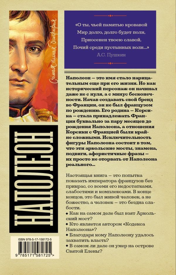This book is an attempt to show the Emperor of the French without embellishment, with all his shortcomings, weaknesses and complexes. In the end, he was a living person, not a deity, and a person is an abyss of weakness. How was the Arcole bridge actually taken? Who is the author of the "Napoleon Code"? Thanks to whom did Napoleon manage to seize power? Did he really die on St. Helena?