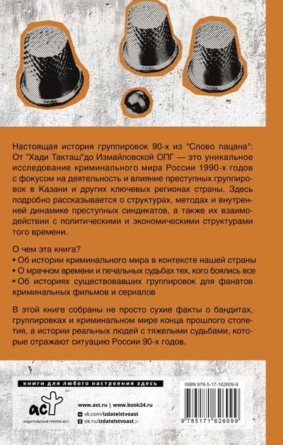 From Khadi Taktash to Izmailovo OCG is a unique study of the Russian criminal world of the 1990s, focusing on the activities and influence of criminal groups in Kazan and other key regions of the country. It details the structures, methods and internal dynamics of criminal syndicates, as well as their interaction with the political and economic structures of the time. What is this book about? - About the history of the criminal world in the context of our country; - About the dark times and sad fates of those who were feared by all; - About the stories of the existing groups for fans of crime movies and TV series. This book contains not just dry facts about gangsters, groups and the criminal world of the late last century, but stories of real people with hard fates, which reflect the situation of Russia in the 90s.