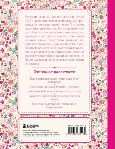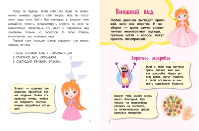 Future ladies need to be taught the rules of conduct and how to make a good impression from an early age. This book will tell a girl how to be a good friend, how to help her mother at home, how to receive guests and be a tactful guest herself, what the rules of the road are, and how to behave in public places. By looking at colorful pictures, learning interesting facts, and solving engaging tasks, the child will not get bored and will easily remember all the tips and rules.
