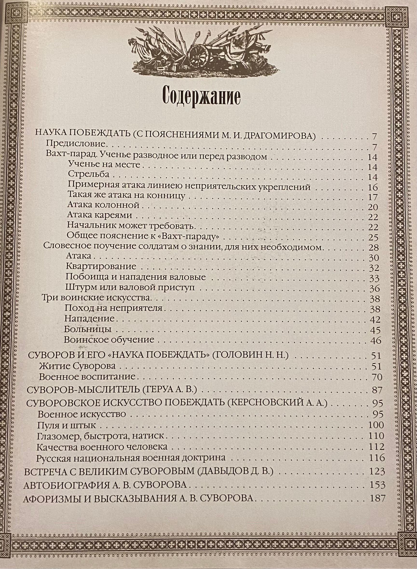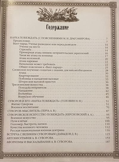 The publication also includes works by the greatest Russian military theorists dedicated to Suvorov's "Science of Victory" (Dragomirov M.I., Gerua A.V., Golovin N.N., Kersnovsky A.A.), memoirs of contemporaries (Davydov D.V.), autobiography and aphorisms of A.V. Suvorov.