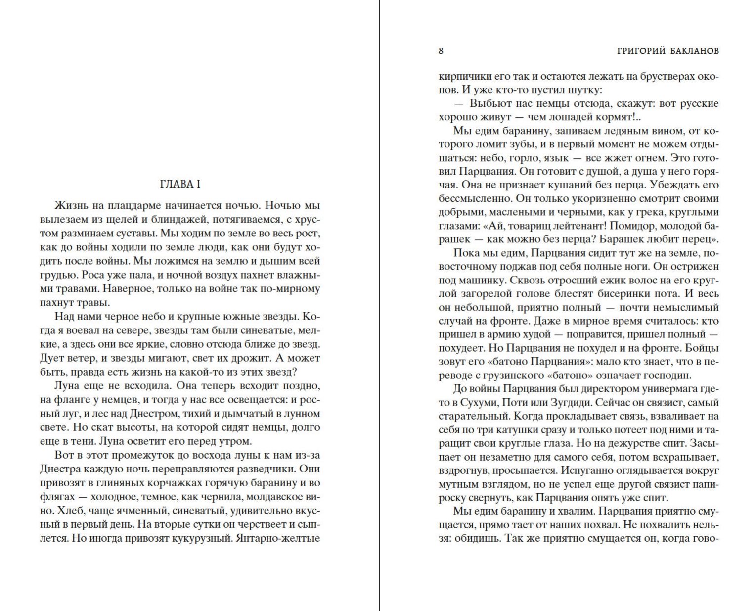 Grigory Baklanov was a Soviet writer, a veteran of the war, and one of the most prominent exponents of "lieutenant prose," a genre that included Viktor Astafyev, Yuri Bondarev, Vasil Bykov, Boris Vasilyev, and Viktor Nekrasov. In 1941, when Baklanov was 17, he volunteered for the front, fighting in Ukraine, Moldova, Romania, and Hungary. The end of the war found him in Austria, with the rank of junior lieutenant. The authentic episodes of the war depicted in Baklanov's works often ran counter to the ceremonial narrative, but they conveyed the truth the author wanted to tell—what he saw and experienced.