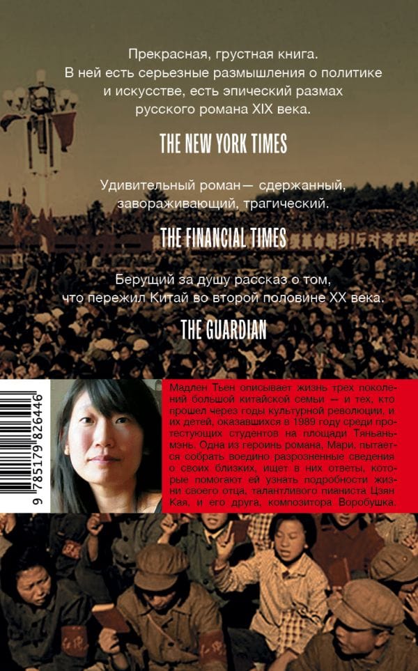 Marie Jiang's family immigrated from China to Canada and settled in Vancouver. Here, after her father's suicide, Marie and her mother sort through his papers and gradually become immersed in the astonishing, brutal, and bloody history of the People's Republic of China, from the Civil War and the Cultural Revolution to the events in Tiananmen Square. The fate of three generations of Marie's family becomes inextricably linked with that of another immigrant, Ai Ming. Events from the present and the past overlap, and the work gradually unfolds into a sweeping epic saga about the lives of people thrown into the merciless millstones of great change, monumental achievements, and great hopes.