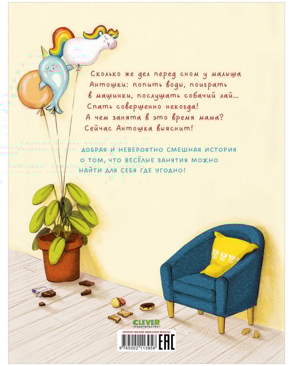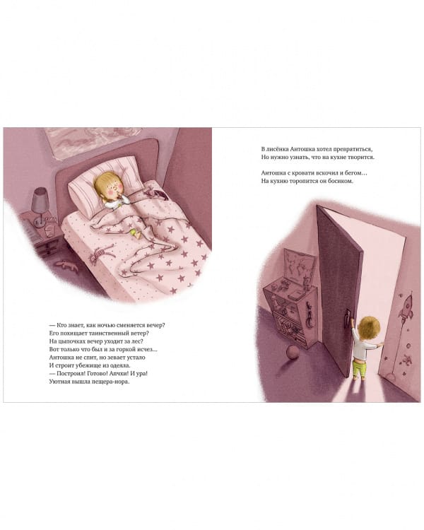 Little Antoshka has so much to do before going to bed: to drink water, play with cars, listen to the dog barking... There is no time to sleep! And what is mom doing at this time? Now Antoshka will find out!