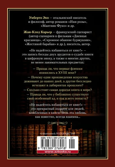 "Don't Hope to Get Rid of Books!" is a recording of a conversation between two erudite scholars about the fate of books in the digital age, as well as many other, no less interesting subjects:
