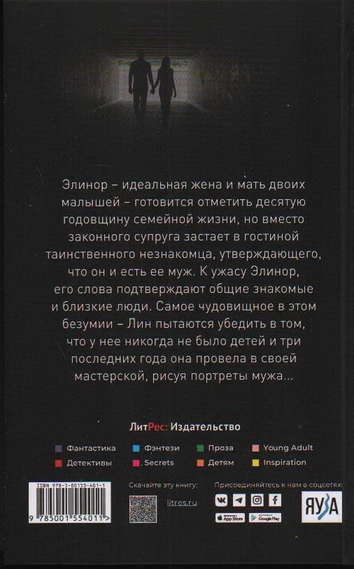 Elinor, the perfect wife and mother of two young children, is preparing to celebrate her tenth anniversary of married life, but instead of her legal spouse, she catches a mysterious stranger in the living room, claiming that he is her husband. To Elinor's horror, his words are confirmed by common acquaintances and close people. The most monstrous thing in this madness - Elle is trying to convince that she never had children and the last three years she spent in her studio, painting portraits of her husband ...