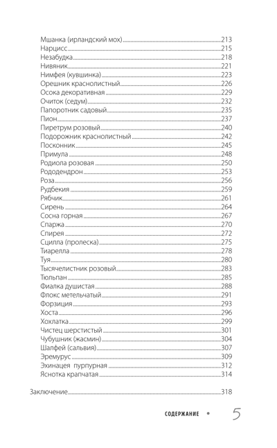 The book provides detailed instructions, recommendations, and expert advice: the specifics of cultivating one hundred ornamental plants, landscape design of any scale and complexity, step-by-step recommendations for choosing varieties, soil composition and planting requirements, lighting and watering, overwintering methods, and maintenance.