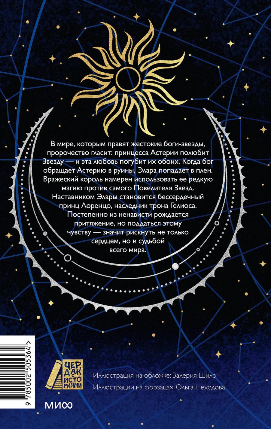 In a world ruled by cruel star gods, a prophecy declares that the princess of Asteria will fall in love with the Star—and this love will destroy them both. When the god turns Asteria to ruin, Elara is captured. The enemy king intends to use her rare magic against the Lord of the Stars himself. Elara is mentored by the heartless Prince Lorenzo, heir to Helios' throne. Gradually, hatred gives birth to attraction, but to succumb to this feeling means risking not only one's heart, but the fate of the entire world.