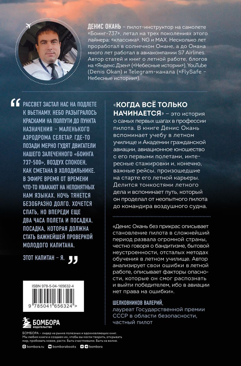 Denis Okan, a civil aviation instructor pilot, has written a book about the main business of his life. "When Everything Just Begins" is a story about the very first steps in the profession of a pilot. In the book Denis recalls his studies at the Buguruslan flying school, the Academy of Civil Aviation in St. Petersburg and the United Airlines training center in the United States, his first steps in mastering An-2, Tu-154, Boeing 737 and, of course, memorable flights that happened at the beginning of his flying career. He shares the subtleties of flying and recalls the path he traveled from an inexperienced pilot to an aircraft commander. You will learn what pilots learn and how they prepare for their tasks, how they fly real routes in different weather conditions, how they cope with non-standard situations, and much more about the everyday life of civil aviation.