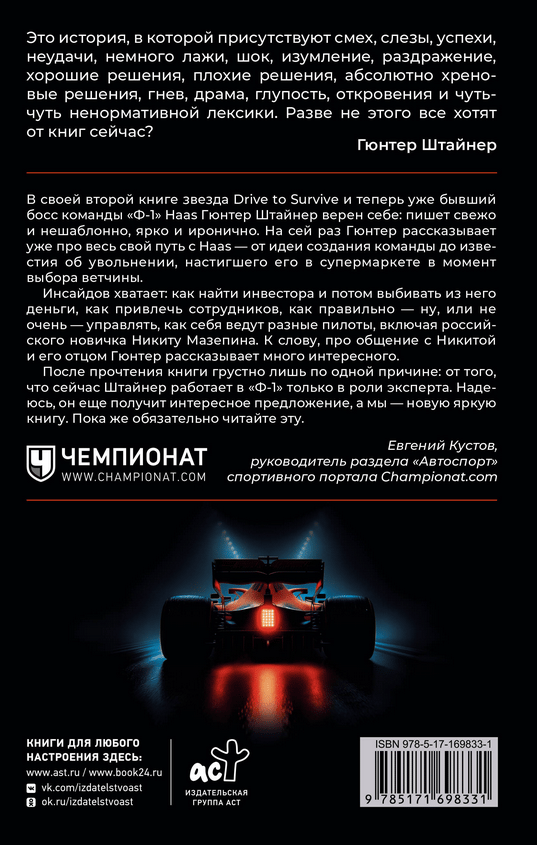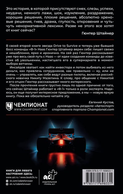 After the success of the book "Survive to Race", Steiner did not have to think long about the sequel. The good old foul-mouthed, but now no longer constrained by the corporate framework of "Formula 1", talks about the years spent at Haas - the team that he created from scratch and made viable.