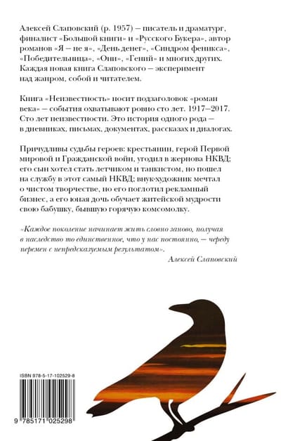 Alexei Slapovsky's book "Unknown" bears the subtitle "novel of the century" - the events cover exactly one hundred years, 1917-2017. One hundred years of obscurity. This is a story of one kind - in diaries, letters, documents, stories and dialogues. Heroes of the novel - a peasant who fell into the millstones of the NKVD, his son, who wanted to become a pilot and a tanker, but went to serve in the NKVD, grandson-artist, who dreamed of pure creativity, but hit the advertising business, and his young daughter, teaching worldly wisdom to his grandmother, a former hot Komsomol. "Each generation begins to live as if anew, inheriting the one thing we have all the time - a series of changes with unpredictable results."