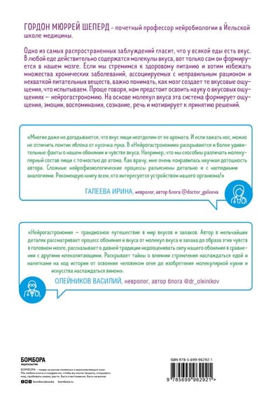 It is important for us to know everything about food - what color it is, how it smells and tastes, whether its texture and temperature are pleasant. After all, on the basis of this knowledge we decide whether or not to eat it, whether or not it will satisfy our physiological needs. The perception of flavor is influenced by almost all the sensations we experience, past experiences, and with whom we ate a particular dish. Neurogastronomy (the science of taste sensation) - does not try to "forcefully" replace a food with a healthier one, it focuses on how a person perceives its flavor. Professor Gordon Shepherd believes that we can not only get used to healthier food, but also not feel as if we are constantly sacrificing something. To achieve this, you have to mislead the brain and make it think, for example, that boiled tastes better than fried. And how to do it - will tell the author of the book. Attention! The information contained in the book can not serve as a substitute for medical advice. Before committing any recommended actions should consult with a specialist.