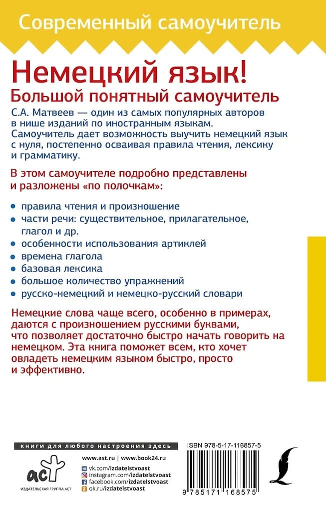 This manual is distinguished by its original presentation, which is sure to interest anyone who strives to master the German language.