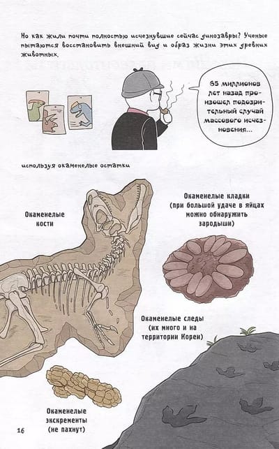 The manhwa is written and drawn by scientist Kim Doyun, who has studied evolution through insects for many years, but has also always been interested in dinosaurs. In Russian, its content was verified by Dmitry Paschenko, a member of the Laboratory of Paleoherpetology at the Paleontological Institute of the Russian Academy of Sciences.