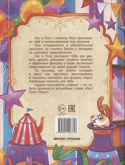 Ox and Pox invite you to an exciting journey! They live on the planet Mox and call themselves Moxes, and they sometimes fly to planet Earth for vacation. It's fun to spend time with them. With Moxes, you can assemble a communication device from cups and a cord, freeze water right in the air. Moxes invent devices and conduct experiments that you can easily repeat. The main thing here is not to get wet!