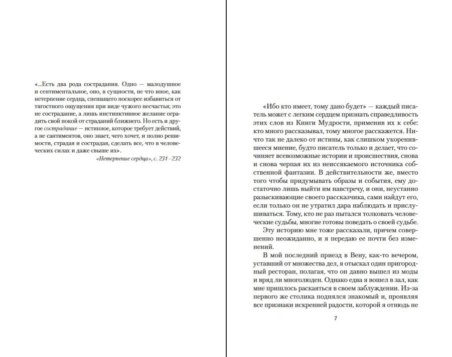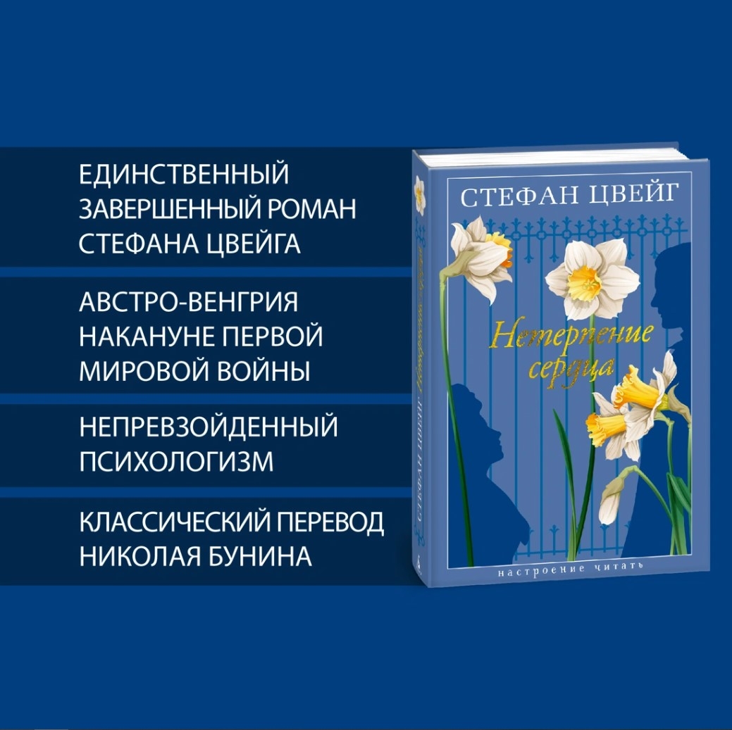 The books of Austrian writer Stefan Zweig captivate readers from the very first line, generously bestowing the joy of recognition and empathy until the very last page. "Impatience of the Heart" is the writer's most famous novel. It is the story of the tragic love between a young officer, eternally in need of money, and a wealthy woman confined to a wheelchair. How can one distinguish compassion from love? Can pity and respect coexist in the same soul? Is it possible to distinguish between genuine feeling and "the impatience of a heart rushing to rid itself of the oppressive sensation of another's misfortune"?