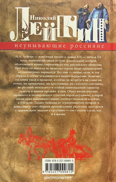 The way of life of Russians of the past and the century before last sometimes subtly, and sometimes very vividly resembles our compatriots now, in the 21st century. Leikin's talent is not limited to satire: in the works included in this collection, the joyful is intertwined with the tragic, the cheerful with the sad - laughter through tears, as in life.