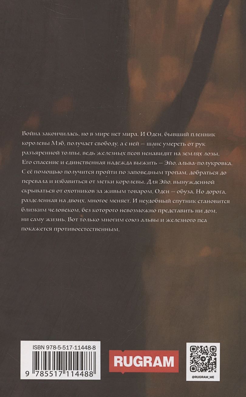 The war is over, but there is no peace in the world. And Oden, former prisoner of Queen Mab, gets his freedom, and with it a chance to die at the hands of an angry mob, for iron dogs are hated in the lands of the vine. His salvation and his only hope of survival is Eio, a half-blood alva. With her help, he can follow the protected paths, reach the pass and get rid of the queen's mark. For Eio, forced to hide from the hunters of the living goods, Oden is a burden. But a road shared by two changes many things. And an inconvenient companion becomes a close person, without whom it is impossible to imagine neither home nor life itself. But only to many people the union of an alva and an iron dog will seem unnatural.