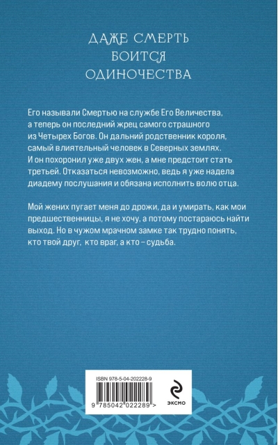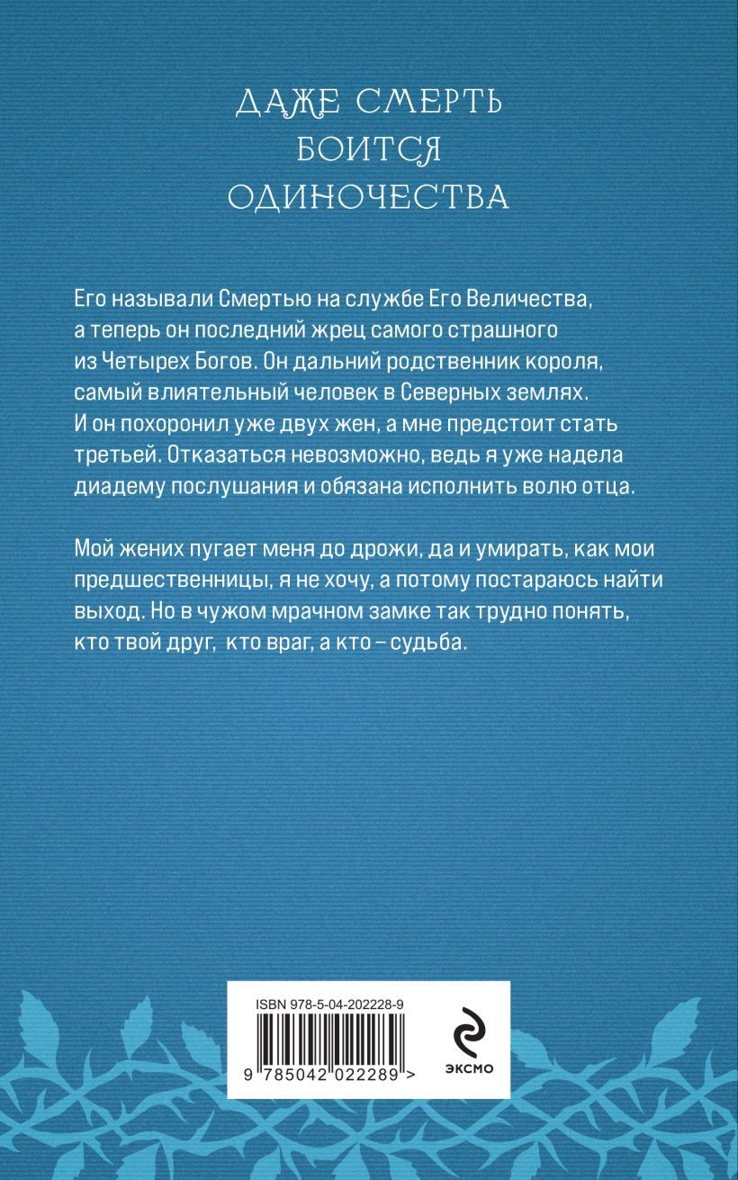 They called him Death in His Majesty's service, and now he is the last priest of the most feared of the Four Gods. He is a distant relative of the king, the most influential man in the Northern Lands. He has already buried two wives, and I am destined to be the third. Refusing is impossible, for I have already donned the diadem of obedience and am obligated to fulfill my father's will.