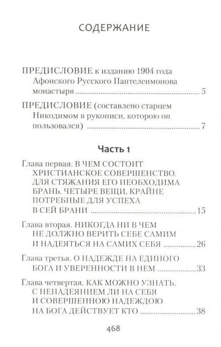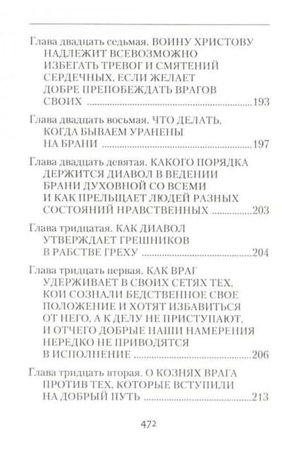 This soul-helpful book rightly bears the name given to it: "The Invisible Battle". As many of the sacred and divinely inspired books of the Old and New Testament received their name from the very subjects about which they teach... and show everyone the right way to salvation and the inheritance of eternally blessed life, so who will not agree that the present book, judging from its content and the subjects it deals with, should be called "The Invisible Battle"? For it teaches not about any sensual and visible warfare, nor about the enemies of the manifest and bodily, but about the mental and invisible warfare, which every Christian accepts from the hour when he is baptized and makes a vow before God to fight for Him for the glory of His divine name even unto death.....