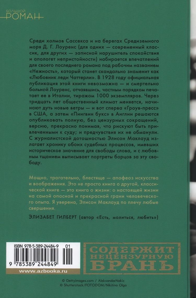 Among the hills of Sussex and on the shores of the Mediterranean Sea D. G. Lawrence (for some - a modern classic, for others - a record breaker of peace and apologist obscenity) is gaining impressions for his last novel under the working title "Tenderness", which will become scandalously famous as "Lady Chatterley's Lover. In 1928, the official publication of this book is impossible - and terminally ill Lawrence, desperate, privately prints it in Italy, circulation of 1000 copies. Thirty years later, the public climate is changing, new winds begin to blow - and here first "Grove Press" in the United States, and then "Penguin Books" in England dare to publish the full, uncensored version, well aware that they risk being brought to court; and their premonitions were not deceived. With journalistic meticulousness, Alison Macleod chronicles both trials, which were of historic importance for freedom of speech, and with loving care writes out the portraits of the fighters for this freedom. For the first time in Russian, "a hymn to freedom and creative imagination" (Madeleine Miller) from an author who "can do anything" (Elizabeth Gilbert).