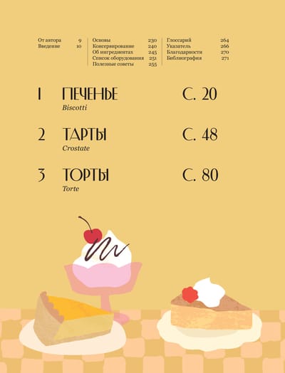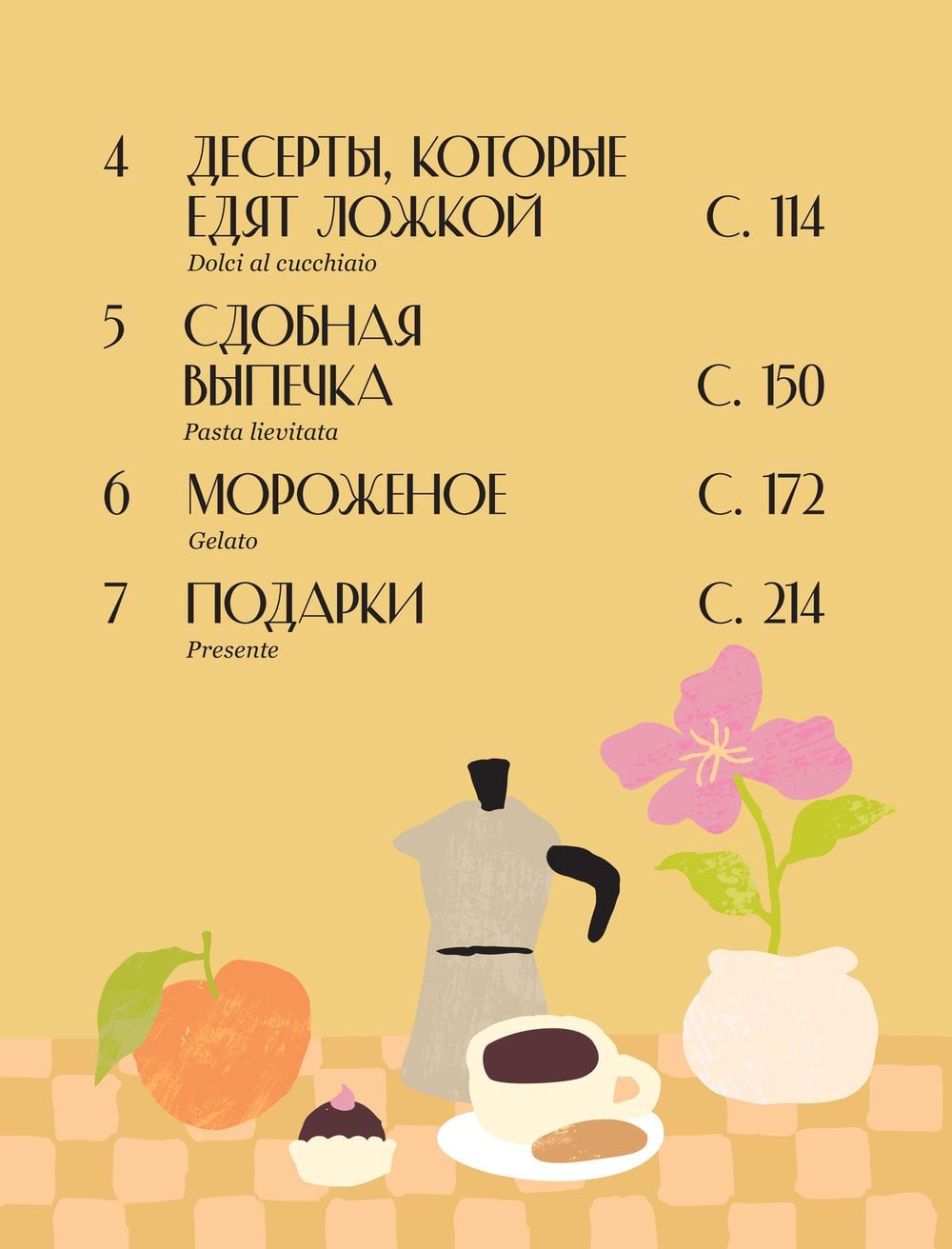 In times when traveling to distant countries, to which we have become so accustomed over the past few decades, is becoming not only a luxury, but also an unattainable dream - in such times it is especially desirable to have in your home everything that would remind, would bring closer, would realize our desire to plunge into the world of our favorite place. For example, Italy. And Italy is largely associated with delicious home-cooked food. And especially with deliciously tasty sweets, which have been prepared in Italy for many centuries and have gained undoubted leadership all over the world. Cantucci - biscotti from Tuscany, Capigliette - the most beautiful and unique tartlets from Sardinia, Pabassinas, Crostata, Sbriciolata, Torta della Nonna - the edible equivalent of a warm hug from your favorite grandma in a colorful blouse, Bomboloni alla Crema, Cannoli and, of course, Cassata - a triumph, a sparkling jewel, a crown of Baroque extravagance with Rococo decorations, the queen of the Italian pastry canon.... - there is no end to these magical desserts. And you can make more than 80 of them yourself. Gelato too, of course. And feel Italy as a guest in your home and enjoy the company of Italy.