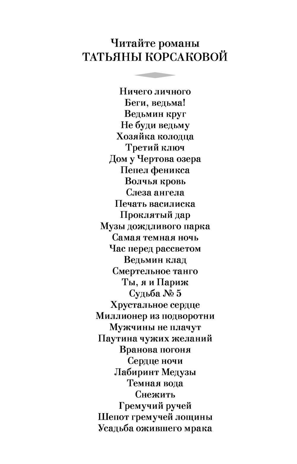 Tatyana Korsakova writes on the border of mixing the genres of sentimental novel, detective and mysticism. Fans of love-adventure stories know her under the pseudonym Alisa Korsak. Her novels have everything: true friendship, first love, mysticism, an unconventional plot.