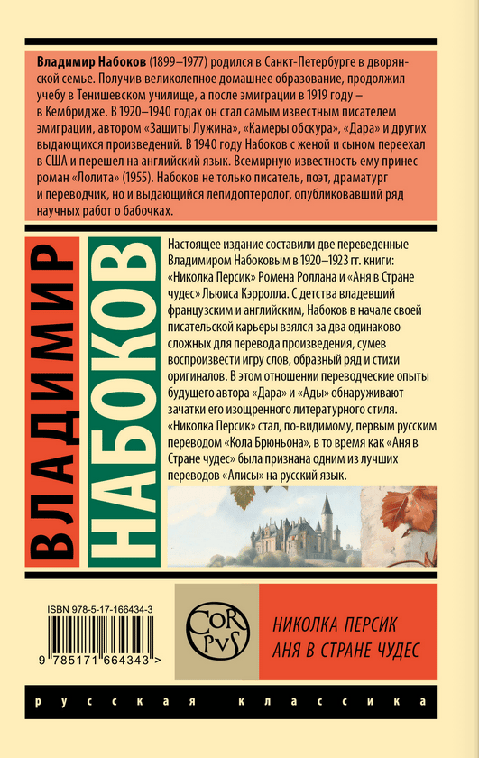 "Nikolka Persik" and "Anya in Wonderland" were among the first works Nabokov signed with his literary pseudonym, V. Sirin.