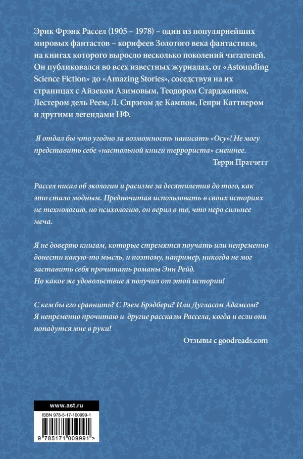Eric Frank Russell (1905 - 1978) was one of the world's most popular science fiction writers, the coryphees of the Golden Age of Science Fiction, whose books raised several generations of readers. He was published in all the famous magazines, from "Astounding Science Fiction" to "Amazing Stories", neighboring on their pages with Isaac Asimov, Theodore Sturgeon, Lester Del Rey, L. Sprague de Camp, Henry Kuttner and other SF legends.