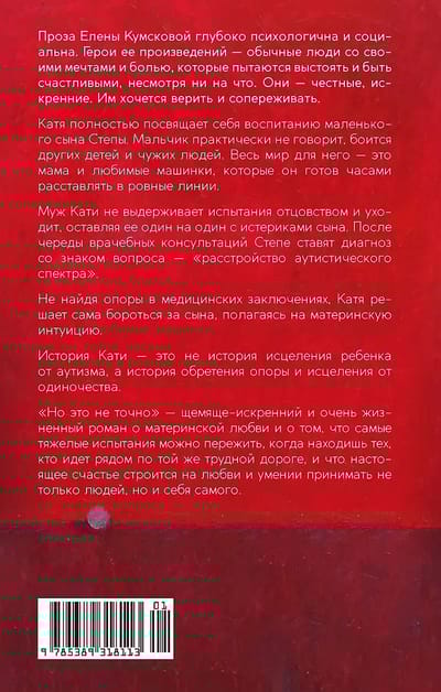 Katya's story is not one of a child's recovery from autism, but one of finding support and healing from loneliness. "But That's Not Certain" is a heartbreakingly sincere and deeply relatable novel about motherly love and how the most difficult trials can be overcome when you find those who walk alongside you along the same difficult road, and that true happiness is built on love and the ability to accept not only people, but also yourself.