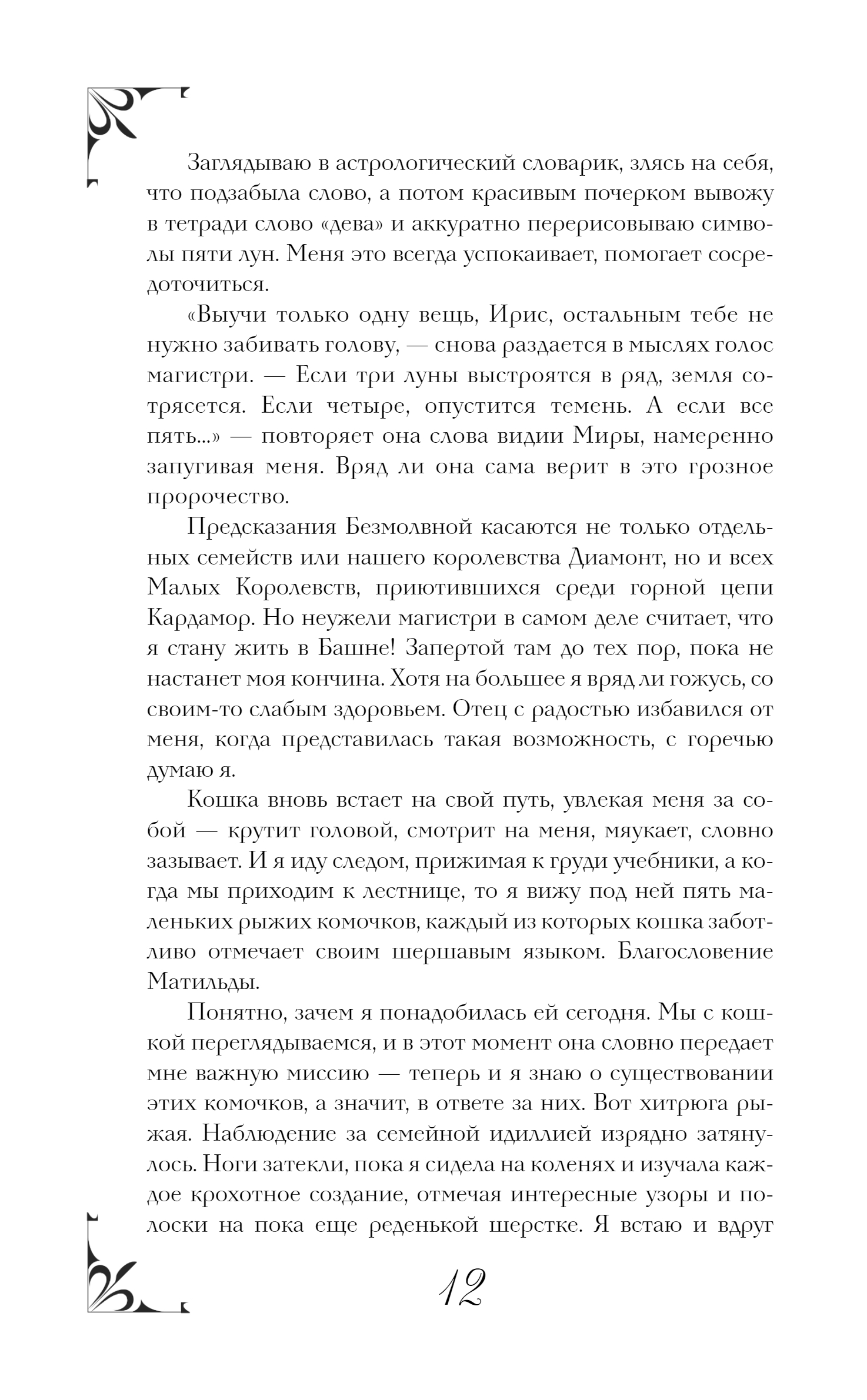 Iris, like other pupils of the school of prophetesses, dreams of becoming the future chosen one of Prince Marcian. But could she have imagined that her family would decide to condemn her to eternal loneliness in the Tower of Silence and leave her silent, alone with endless predictions of the fate of kingdoms, fenced off from the rest of the world?