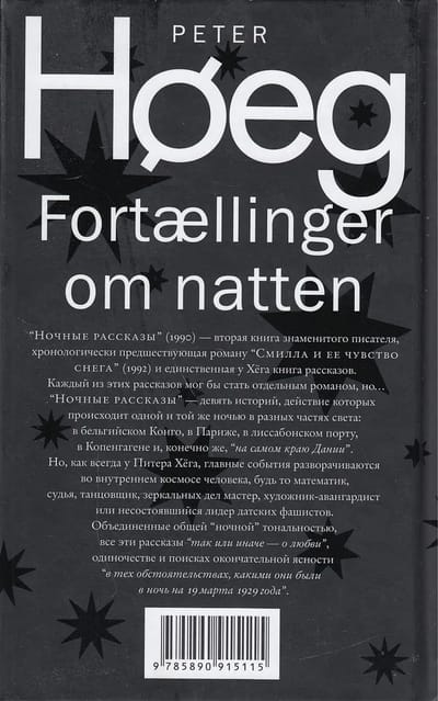 Night Stories (1990) - the second book of the famous writer, chronologically preceding the novel "Smilla and her sense of snow" (1992), and the only book of short stories. Each of these stories could have turned into a novel, but Peter Høeg did not.