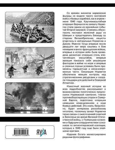 A renowned military historian provides a detailed account of the political underpinnings of the Norwegian Campaign, the plans of the opposing sides in Northern Europe, the German command's preparations for the operation, and the course of the fighting. This book will undoubtedly be of interest to readers, as the capture of Norway is closely linked to the fierce battle in the Arctic during the Great Patriotic War, the Arctic Convoys, and the future cooperation of the Allies of the Anti-Hitler Coalition, who in 1940 were still bitter enemies.