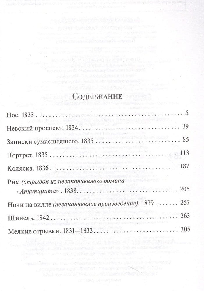 The book includes the famous "St. Petersburg Stories", as well as excerpts and sketches from Gogol's unfinished works of the same period.