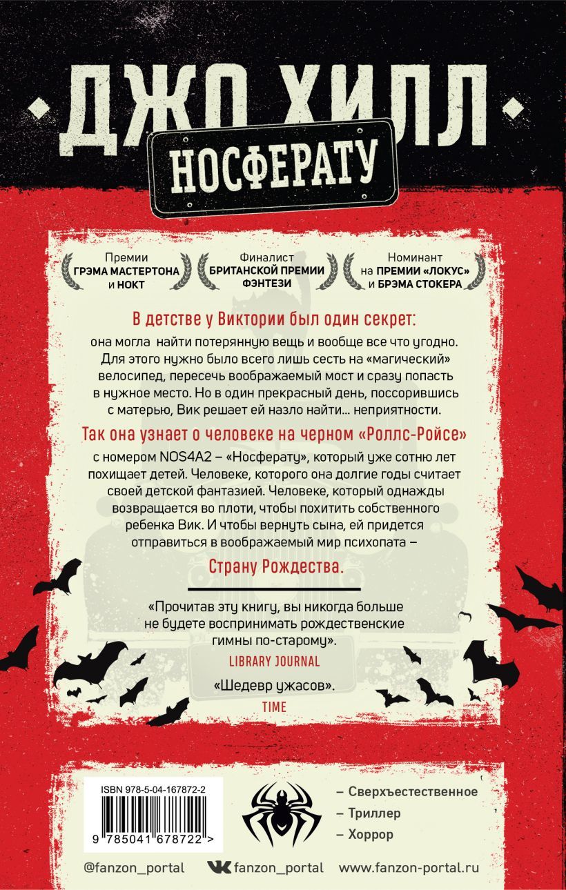Charles Talent Manx has a way with children. He likes to take them for rides in his 1938 Rolls-Royce Ghost with license plate NOS4A2. In it, he can slip from the everyday world onto hidden roads that lead to the wonderful - and terrifying - Land of Christmas. One day, Vic goes looking for trouble - and finds Manx. That was a lifetime ago. Now Vic, an only child who escaped from a serial kidnapper, is all grown up and desperate to forget the past. But Charlie Manx has never stopped thinking about Victoria McQueen. He's on the road again. He's picked up a passenger again - Vic's own son.