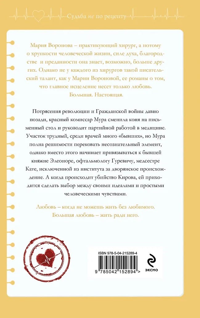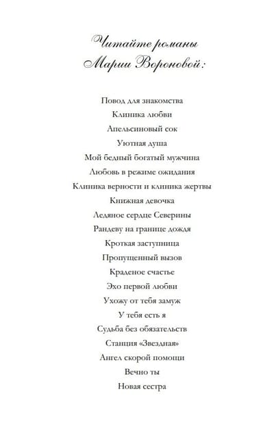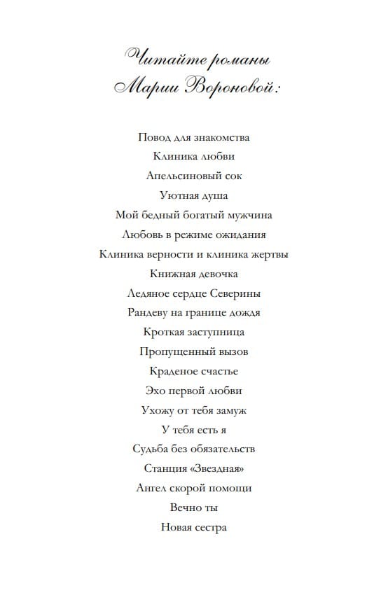 This book is a continuation of a series of novels, the main one of which, "Hello, Sister," begins before the Revolution. Alongside people from a wide range of social strata, the story features Maria Voronova's beloved characters—doctors. Medical ethics, clinical humor, medical secrets, and medical intrigue—all are abundantly represented in her novels. This time, readers will be introduced to Leningrad in the mid-1930s. Kirov's assassination, the atmosphere of the time, and amidst all the problems and difficulties—ardent love, unwavering loyalty, and human decency bordering on self-denial. Maria Voronova is a master of immersive historical exploration; you become instantly and permanently attached to her characters, and you believe unconditionally in the situations she creates. So, Voronova's new book is a new gift for the heart and mind!