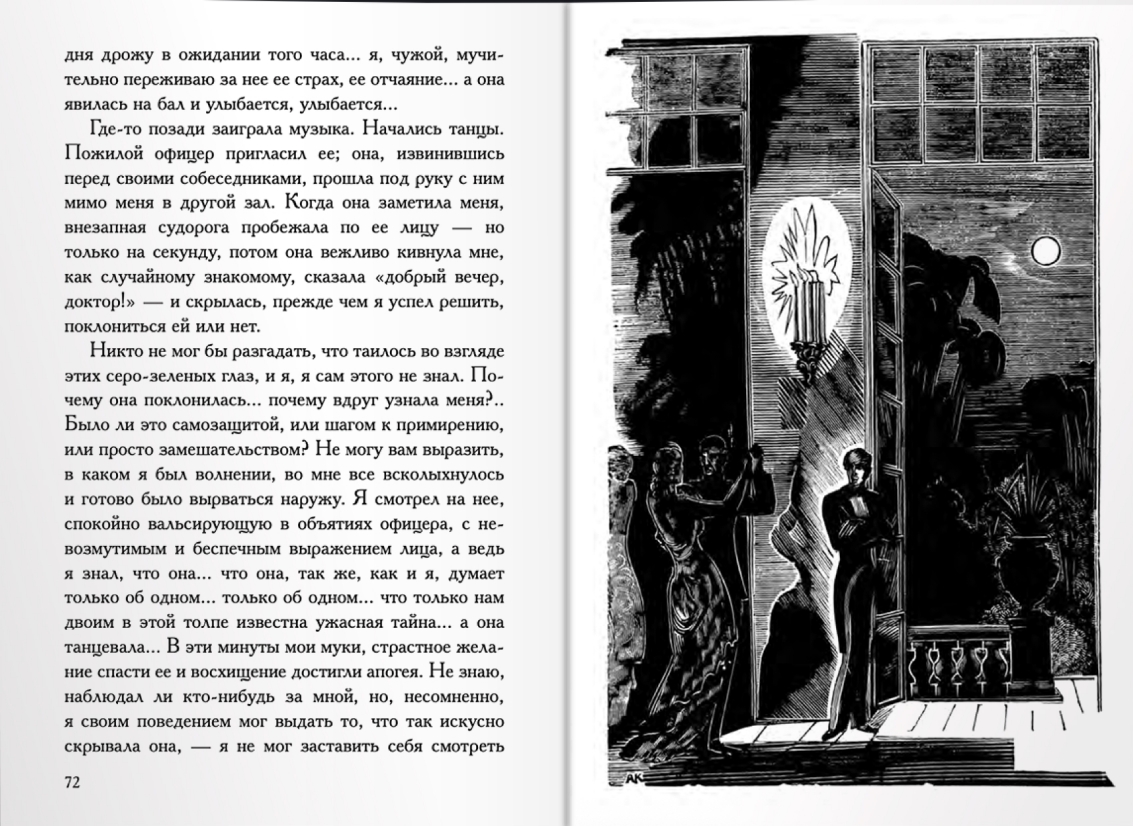 The text is accompanied by illustrations by Alexey Kravchenko, which enhance the atmosphere of the works and convey the characters' emotional states with remarkable precision. The woodcuts were created in 1934 and first published in 1936.